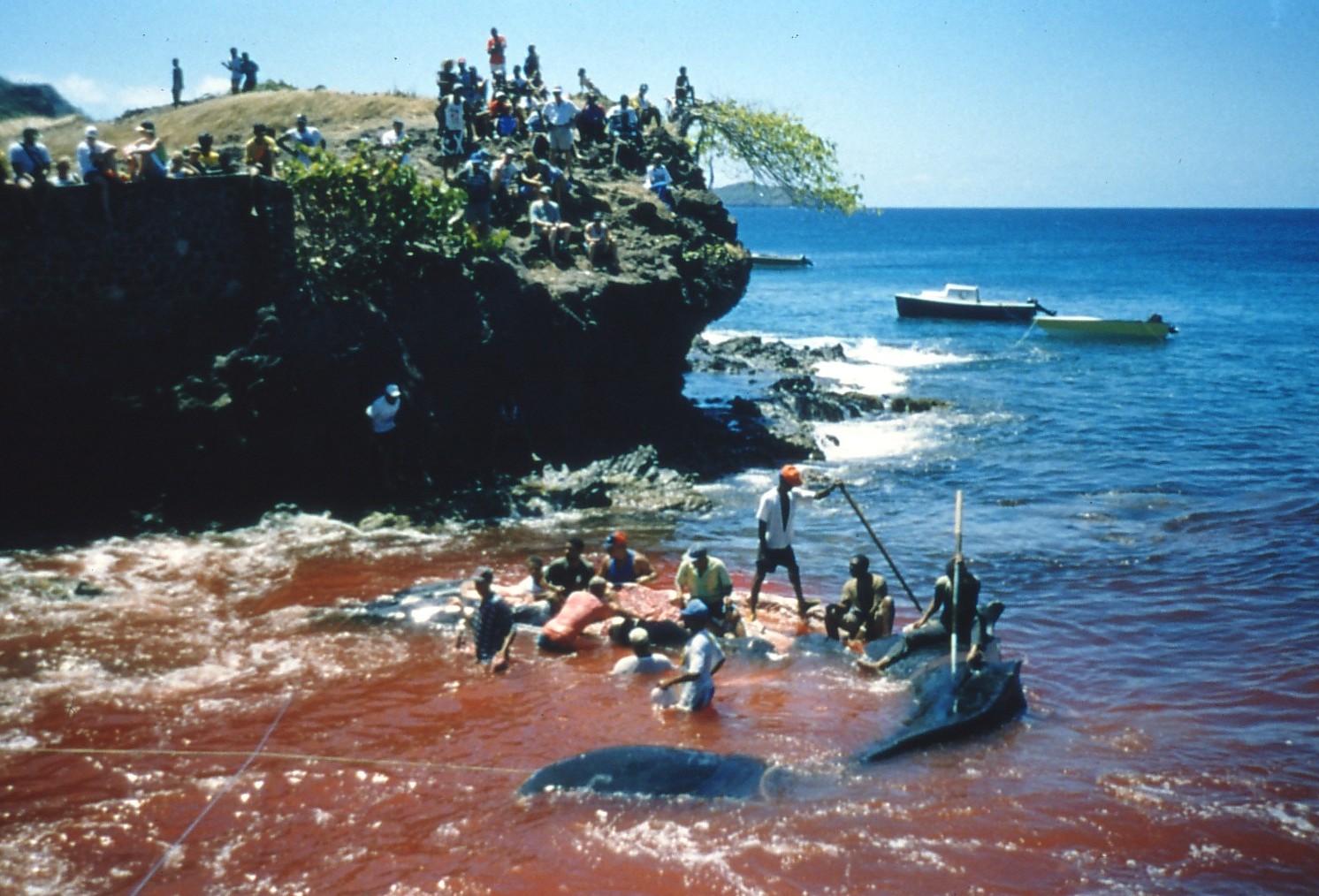 ザトウクジラの解体作業 (プティ・ネイヴィス島)